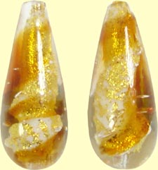 1 Murano 24kt Gold Foil Topaz Drop Bead – hole