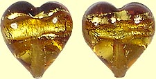 2 Murano 24kt Gold Foil Topaz Heart Beads –