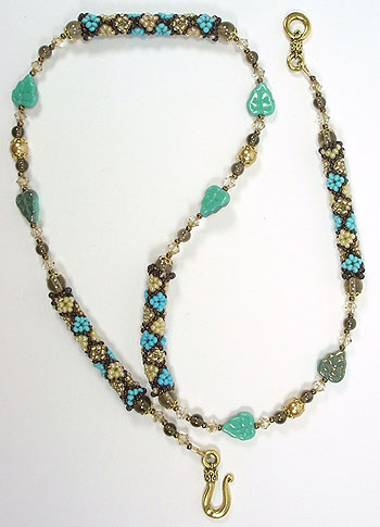 Get the kit for only: £19.75 You can adjust the length of the necklace by adding beads of your own or omitting elements of the design shown above - if you want to make the necklace as shown, take careful note of the photograph and work from this - always check, check and recheck the design before you finish. You have more than enough stringing wire (Beadalon) to make up the necklace. The kit is designed to be worked by