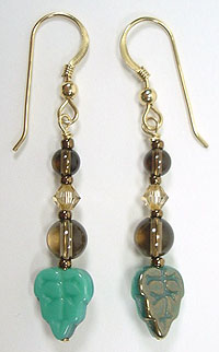 Jabulani tube beads, Czech glass leaves, Smoky Quartz, Swarovski crystal beads